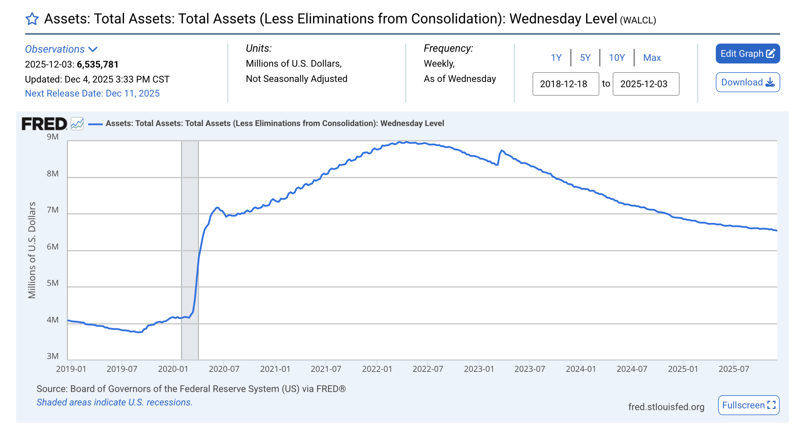 - На заседанието си на 28–29 октомври 2025 г. Фед обяви, че балансовото свиване ще спре на 1 декември 2025 г., по-рано от очакваното (пазарите очакваха края на QT чак през 2026 г.).