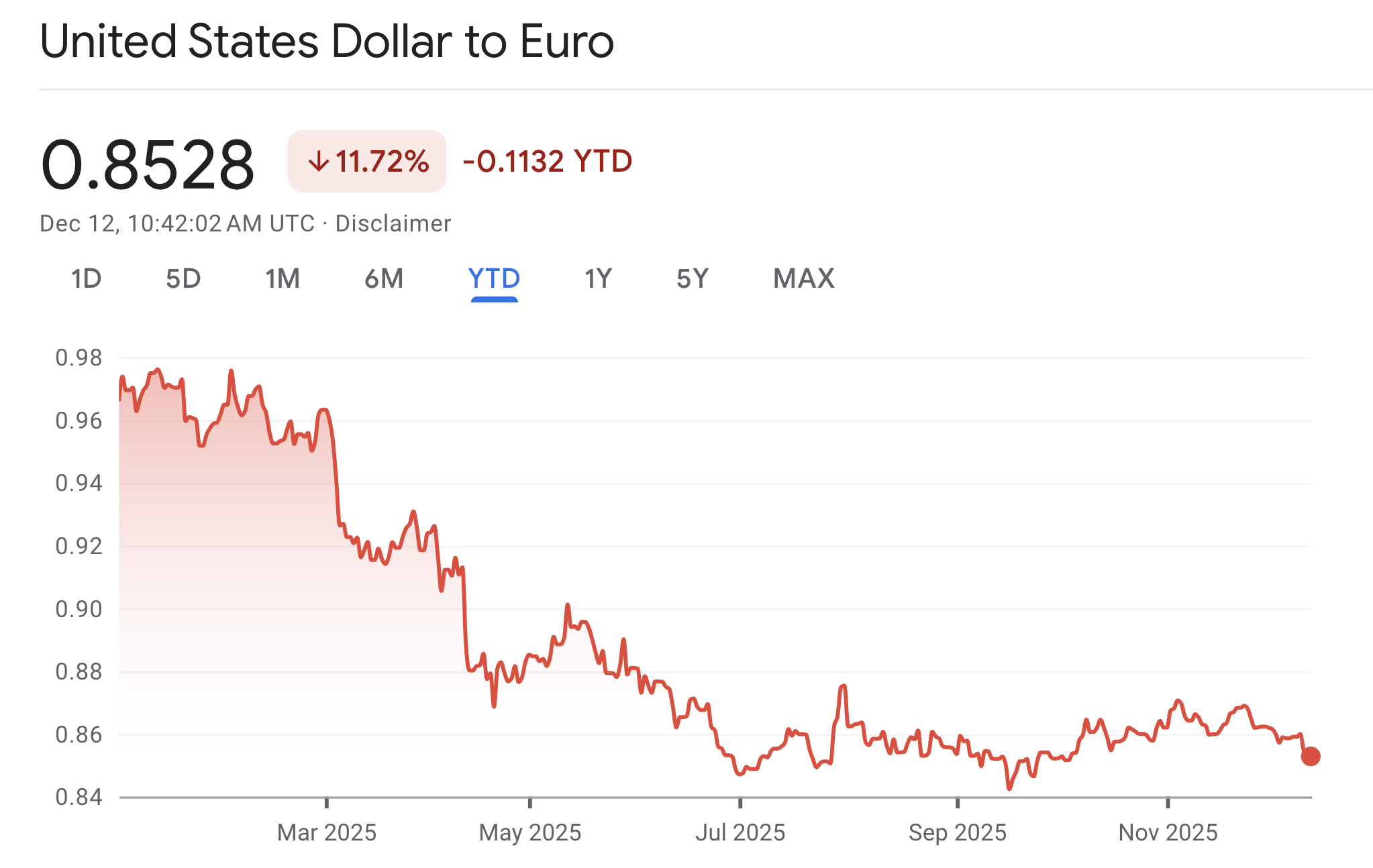 Първо – средната стойност на курса долар / евро в последните 10 г. гравитира около 0,89. Движенията варират от 0,80 до над 1. Не е изненада спадът от -11.73% на долара спрямо еврото от началото на годината, предвид битката за отслабване на валутата, която САЩ и ЕС (както и други големи икономики) водят помежду си, за да имат по-добро конкурентно предимство при износа (особено актуално и важно за Тръмп и САЩ, предвид огромните дефицити между внос и износ). Така движението от 0,97 до 0,85 от началото на годината досега не нещо неочаквано, даже обратното. Това е търсен ефект от Тръмп и не е трудно да го разберете от неговите изявления.